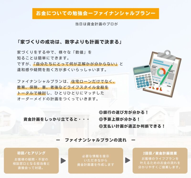 土地や間取りに加えて、家づくりの際に気になるお金について、プロにご相談いただけます♪(^^)