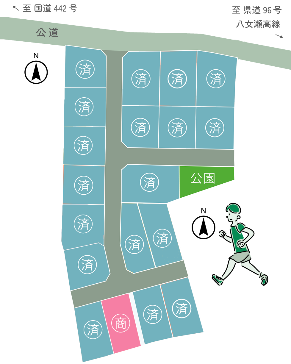 - 北側公道幅員7.6m、団地内道路幅員6.0m